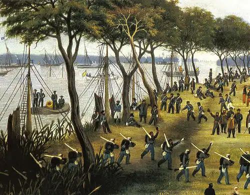 ![]() Allied troops recapturing Corrientes province, Argentina. Painting by Cándido López (1840–1902), who was there. | |