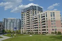Following a period of struggle, Tridel revived itself as one of the city’s biggest developers during the 2000s housing boom.[9] The late 1990s and early years of the 21st century saw an unprecedented building boom occur in Toronto and Tridel was a central player. Today the Tridel group consists of a group of companies including building company Deltera (Construction Management), Del Realty Incorporated Brokerage (Real Estate Broker), Del Property Management (Condominium Property Management), DelSuites (Corporate Housing), Del Condominium Rentals (Condominium Rental Management), The DMS Group (Property Services) and Delmanor (Retirement Living). The boom has seen Tridel erect condominium towers across the Toronto area. Tridel has also been praised for its innovative technology and especially its focus on environmentally friendly design.[10]