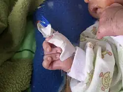 About 60% of pregnancies that are affected do not result in a live birth.[13] Major causes of death include hypoxia and heart abnormalities. It is impossible to predict an exact prognosis during pregnancy or the neonatal period.[13] Half of the live infants do not survive beyond the first week of life without interventions.[17] The median lifespan is five to 15 days without interventions.[18][19] About 8–12% of infants survive longer than 1 year without interventions.[20][21] One percent of children live to age 10.[13] However, a retrospective Canadian study of 254 children with trisomy 18 demonstrated ten-year survival of 9.8%, and another found that 68.6% of children with surgical intervention survived infancy.[21] Though rare, some persons with Trisomy 18 survive into their twenties and thirties with the current eldest being well over 50 years. Current ongoing research at the University of Michigan shows survival rate with full interventions is about 90% until the first birthday, and 80% until 5 years. [22]