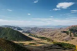 Traditionally, the Tuvan people are a Central Asian yurt-dwelling nomadic culture, with distinctive traditions in music, cuisine, and folk art. Tuvan music features Tuvan throat singing (khoomei), in which the singer sings a fundamental tone and an overtone simultaneously. This type of singing can be heard during performances by the Tuvan National Orchestra, at events such as the 'International Khoomei Day' held at the National Tuvinian Theatre in Kyzyl.[61] The Tuvan craft tradition includes carving the soft stone, agalmatolite. A frequent motif is hand-held-sized animals, such as horses. Important archaeological excavations in Tuva include Arzhaan-1 and Tunnug 1,[62] dating to the ninth century BC.[63] and Arzhaan-2, where Scythian animal art in great variety, and over 9,000 decorative gold pieces were unearthed.[64][65] A collection of gold jewelry from this site is on display at the National Museum Aldan-Maadyr in Kyzyl.[61] Festivals celebrating Tuvan traditions include the ecological film festival "The Living Path of Dersu", the Interregional Festival of National Cultures "Heart of Asia". It has become a tradition to hold the international festival of live music "Ustuu-Khuree", the International Symposium "Khoomei – the Phenomenon of the Culture of the Peoples of Central Asia", the Regional Competition-Festival of Performers on National Instruments "Dingildai", the International Felt Festival "Patterns of Life on Felt" Pop songs "Melodies of the Sayan Mountains".[66]