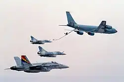 The squadron deployed in December 1988 aboard USS Constellation to the Indian and Western Pacific Oceans, returning in June 1989. Immediately upon their return, they upgraded to C model Hornets.