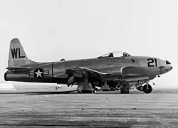 On 17 September 1945, the squadron landed at the Yokosuka Naval District to begin occupation duty in mainland Japan.[15] Occupational duty in Japan lasted till May 1946, when MAG-31 was notified to prepare for the termination of its Japanese assignment; VMF-311 was going home.[18] Between July 1946 and April 1947 the squadron had a sleeping existence and being transferred to MAG-32 and later MAG-12 while consisting of one officer, but in 1949 VMF-311 became the first West Coast Marine jet squadron when it started flying the TO-1 Shooting Star. Coincidentally the squadron was re-designated Marine Fighter Squadron 311 (VMF-311) and around that time acquired the code letters WL, phonetically pronounced as "William Love," but from which also came the nickname "Willy Lovers".[19] The squadron quickly transitioned to the F9F Panther in October 1949 and found itself once again preparing for war by November 1950, arriving once again at Yokusuka airfield in Japan.