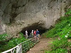 The Vorontsovskaya Cave (Воронцовская пещера) was the first cave to be surveyed. It may be accessed through a dozen entrances dotting the slopes of the Kudepsta River valley, at heights ranging from 419 to 720 meters above sea level. The Prometheus Grotto, with a length of over 120 meters, is developed as a tourist destination. The cave takes its name from the nearest settlement, Vorontsovka. It is known to contain bones of cave bears and early humans.[1]