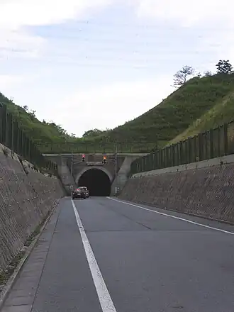 Shin Wada Tunnel the distant of which is 14,777 m that has belonged to the Shin-Wada Tunnel Toll Road since 1978. Since 1 April 2022, a driver is able to pass through the former toll road without toll tickets,[5] so the road which runs over this tunnel has been gone free to pass though since 1 April 2022.[6][7]