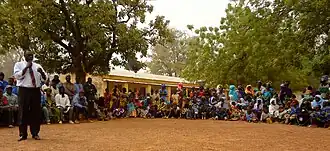 Due to his work in development, Samaké became well known and respected in Mali.[5] In 2009, Samaké recounts how the current mayor, who had already been in power for 10 years, was seeking re-election for a third term. At this time less than 10% of the population of Ouélessébougou was paying their taxes and salaries were behind for 6 months.[13] Samaké ran for the position of Mayor of Ouélessébougou under the Union for the Republic and Democracy (URD) party. Ouélessébougou encompasses 44 villages. Samaké's name was listed at the top of a slate of 23 candidates for council positions.[5] Samaké won with 86 percent of the vote.[2][20] Samaké focused on ending corruption and increasing government transparency as Mayor. In 2009, Ouélessébougou was ranked 699 out of 703 communes (groupings of tribal villages) in Mali for governmental management and transparency.[11] Two years into Samaké's tenure as mayor, the city now ranks in the top 10 in the country, with a tax collection rate of 68 percent.[11] Samaké's term as mayor has seen a significant rise in tax revenue as well. Prior to his election as mayor, less than 10% of the population were paying their taxes.[21] At the end of 2010, tax collection had risen to 68%, and is expected to reach between 80–90% by the end of 2011.[21] As Samaké turned Ouélessébougou around, he was elected vice president of Mali's League of Mayors (704 mayors nationwide). In December 2011, Samaké coordinated with the Utah League of Cities and Towns to bring several mayors from Mali to Utah so that they could experience better government practices.[4][22] He also lobbied for and got increased resources from the central government to build a new hospital, a first public high school in the region, a new water pump system to replace old water wells and a solar panel field, the largest in West Africa.[4][23] Included in his track record as Mayor, Samaké with funds from the government has also provided funds in the amount of 5 million FCFA(about 10000USD) to repair and equip existing schools with school desks and supplies.[24] Samake also helps facilitate medical and dental expeditions from US partners.[25]